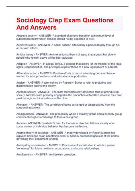 Online PDF SOCIOLOGY CLEP EXAM ANSWERS Epub ManyBooks